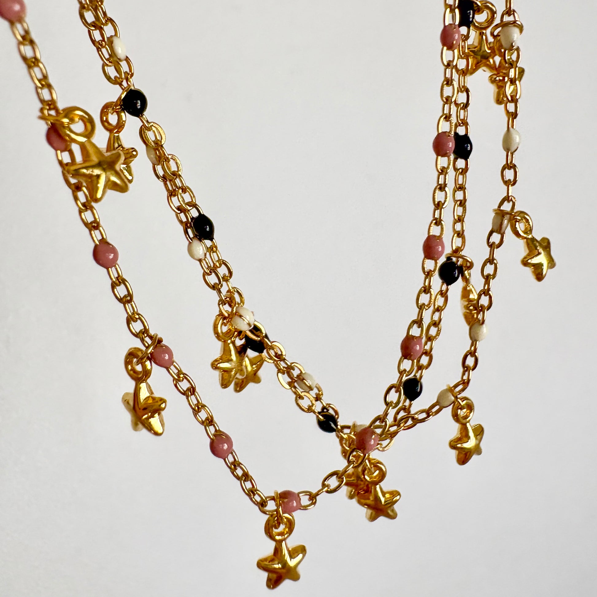 Catenina smaltata in acciaio placcato oro con MicroStelline