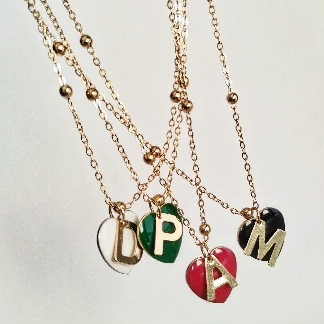 Catenina in acciaio con Cuore Smaltato Colorato e Letterina in Acciaio.